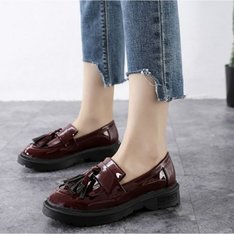 Jual Sepatu Docmart Wanita Tassel Motif Pita Rumbai Variasi Tali Gesper dengan harga Rp155000 dari toko online ViolettaShope Kab.